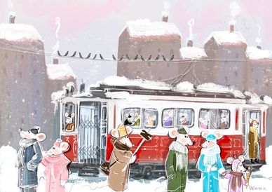 „Straßenbahn“ Aquarell, Gouache, Buntstift 2022